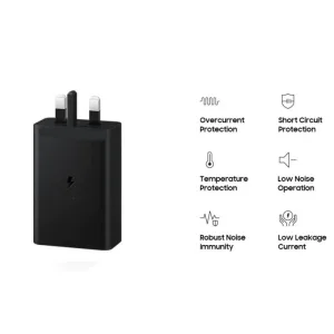 Key Features: Lightning-Fast Charging: Experience blazing-fast charging speeds with 65W Power Delivery. Universal Compatibility: Works seamlessly with laptops, smartphones, tablets, and more, thanks to its versatile USB-C interface. Safety First: Trust in Samsung’s commitment to safety with built-in safeguards against overcurrent and overvoltage. Product Description: Discover the future of charging with the Samsung 65W PD Charger. This powerhouse charger is engineered to elevate your charging experience to new heights. Unleash Speed: With a staggering 65W of Power Delivery, this charger can revitalize your devices in record time. Say goodbye to the frustration of slow charging and hello to a world of limitless possibilities. One Charger, Endless Compatibility: Simplify your life by having one charger for all your gadgets. Whether it’s your laptop, smartphone, tablet, or other USB-C devices, this charger has you covered. It’s a true all-in-one solution. Safety You Can Rely On: Samsung’s dedication to safety means you can trust this charger with your valuable devices. It’s equipped with advanced protection against overcurrent and overvoltage, ensuring your gadgets stay safe while they power up. Make a Statement: Beyond its incredible performance, the Samsung 65W PD Charger boasts a stylish design that complements your tech setup. The iconic Samsung logo adds a touch of elegance to your charging routine. Why Wait? Upgrade Today: Don’t settle for subpar charging speeds and unreliable chargers. Elevate your charging game with the Samsung 65W PD Charger and experience a future where your devices are always ready for action. Elevate Your Charging Game with the Samsung 65W PD Power Adapter Trio USB-C 2 Ports, USB-A Port Charger Fast Charging
