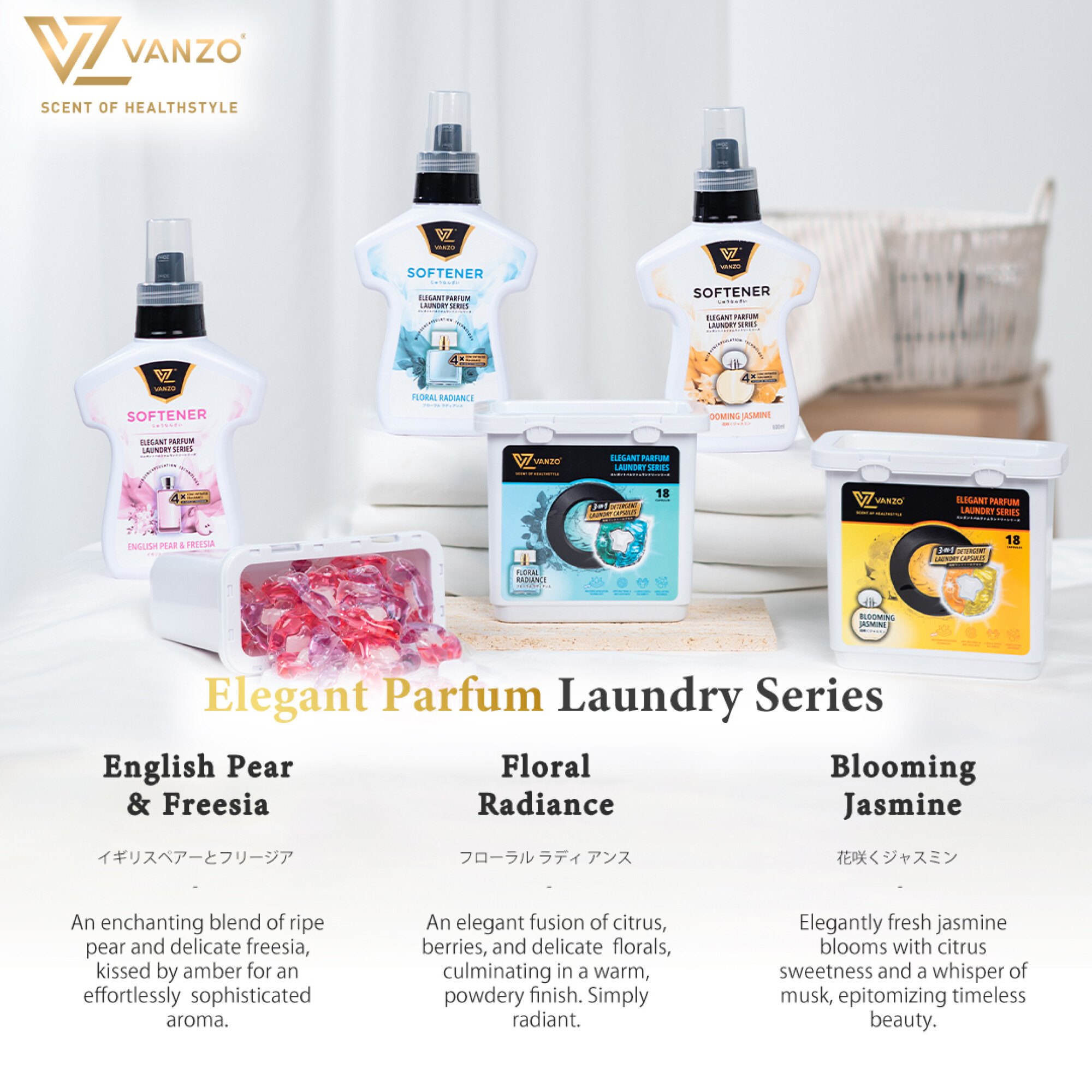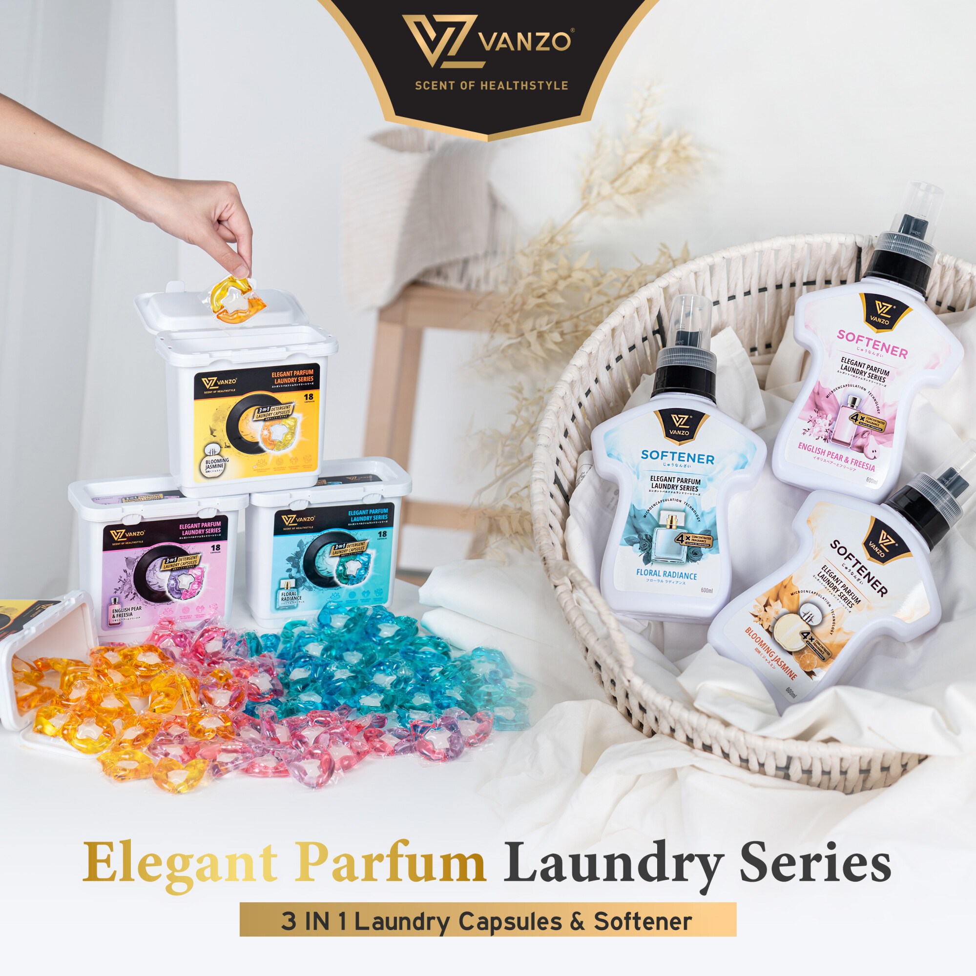 Elegant Parfum Laundry Series: 3-IN-1 Laundry Capsules