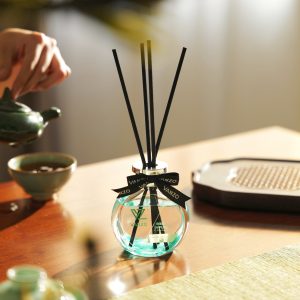 – Decorative Accent (Elegant glass bottle and natural rattan reeds)